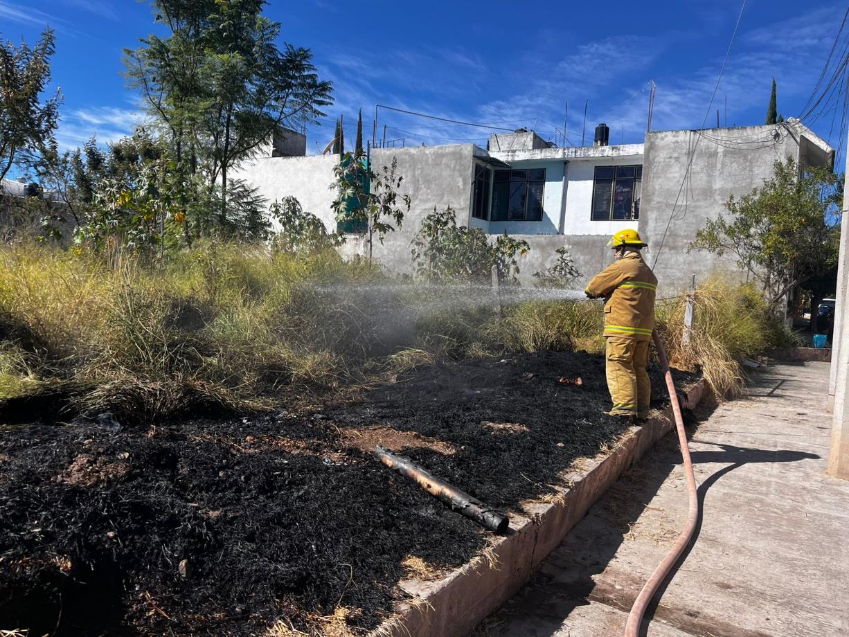 Huajuapan de León, Oax.- Un incendio de pastizales en el fraccionamiento Puerta del Sol, de la zona centro en Huajuapan,…